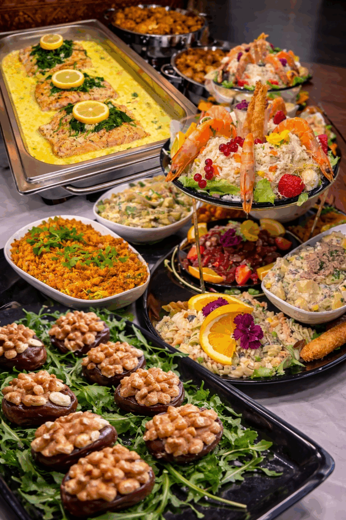 We werken met verschillende cateraars samen. Van Limburgse klassiekers tot oosterse hapjes en buffetten